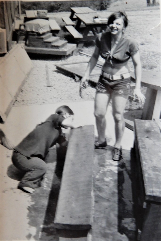 I don’t remember when the call came to the box office that John would be fine, but we all heaved a tremendous sigh of relief.  John had needed a lot of stitches and a tetanus shot, and he was given pain pills. Nelly took John and Judy straight from the emergency room to the campground cottage owned by Charles and Jerry Beall in Independence, Pennsylvania, where a bunch of us were living.  Nelly then returned to the barn at some ungodly hour to help complete the strike.