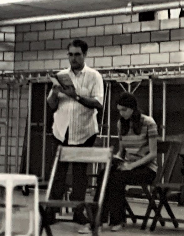 Arsenic rehearsal–Larry Crofford, Marlene Marston Bringardener, and a guy whose name I’ve forgotten.  Any help remembering his name would be appreciated.