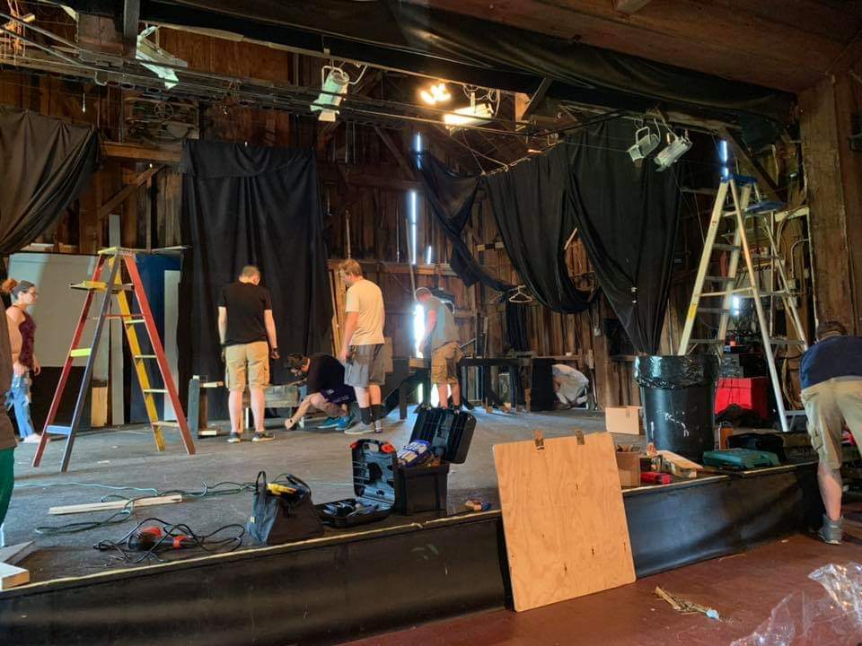 It was pretty late, probably around 3:00 a.m., so we stopped to grab a few hours of sleep.  Miraculously, everyone, except John, showed up at the barn the next morning at 10:00.  We finished the Barefoot set, and the cast was able to rehearse on stage Monday and Tuesday evenings, before opening on Wednesday.
