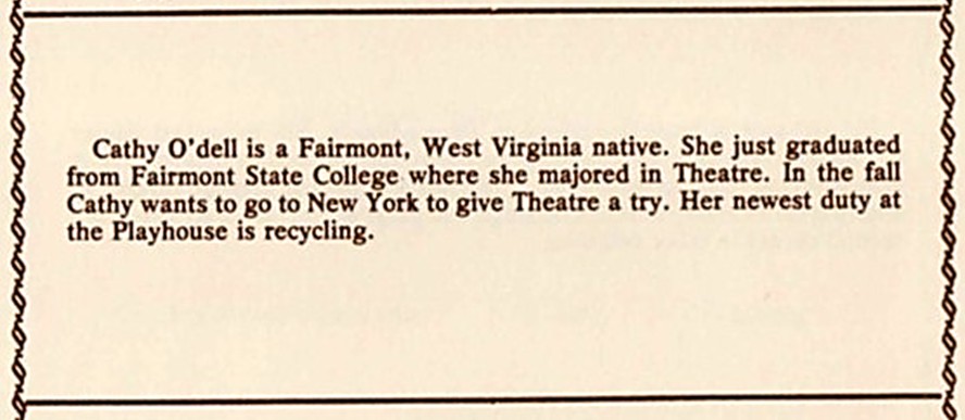 Amy went back to West Liberty in the fall of 1983 for her sophomore year and did Chicago that fall. Several of Amy’s friends from the Playhouse attended, and we all will tell you it was a fabulous production. By the way, another Playhouse actress, Eva Fotis, also had a part in the show.